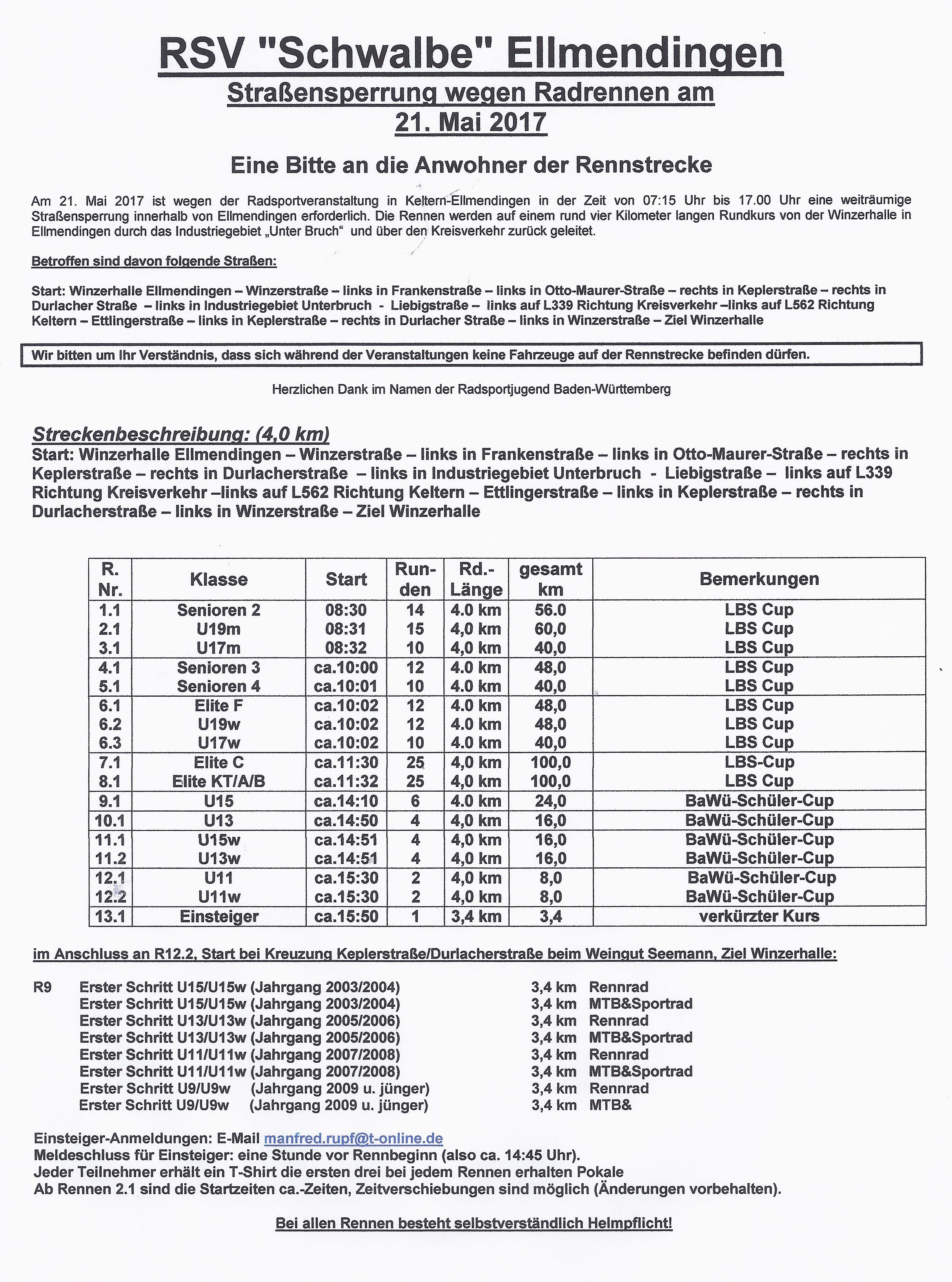 ← Hinweis an die Anwohner der Rennstrecke und unsere Gäste