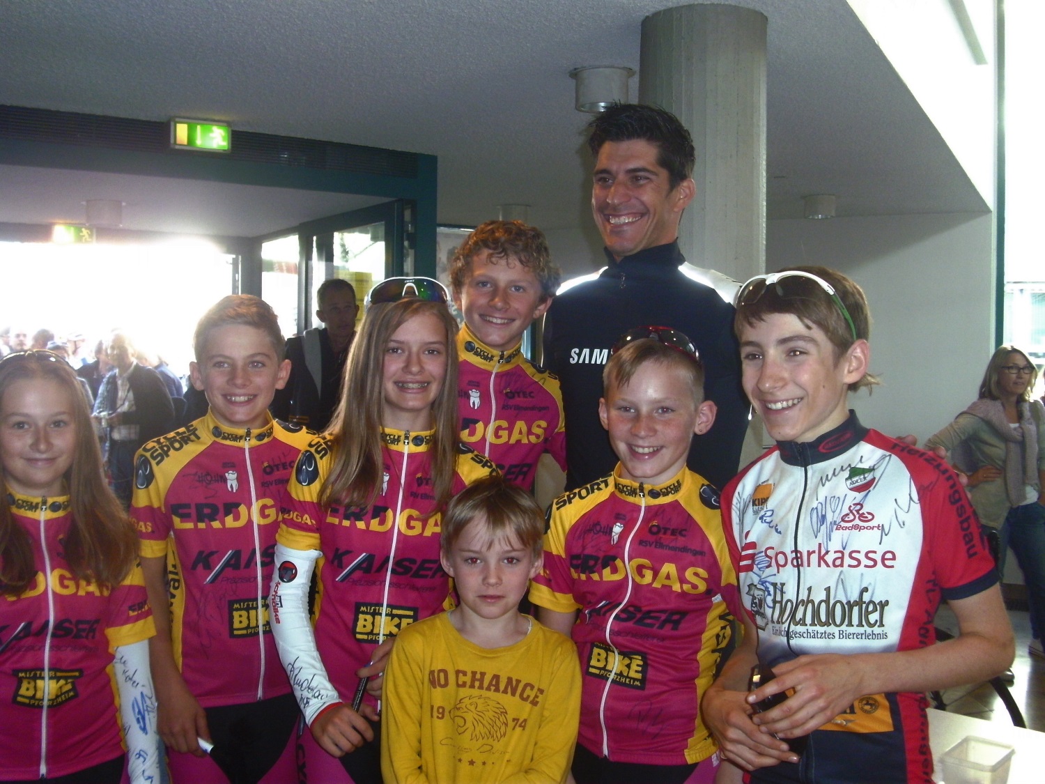 Ihre letzten Wettkämpfe in dieser Saison bestritten die jungen Schwalben der Altersklassen U13 und U15 einen Tag später in Ditzingen bei Ludwigsburg, wo sie im Rahmen des Abschiedsrennens von Danilo Hondo zahlreiche aktuelle und früherer Weltklasseathleten wie z.B. Jens Voigt, Franco Marvulli (mehrfacher Welt- und Europameister auf der Bahn), Jens Lehmann, Olaf Ludwig, Didi Thurau und Gregor Braun hautnah erleben konnten. Katharina Becker bestätigte ihre gute Form mit Platz zwei, Benni Boos gewann bei den U13, Plinius Naldi (U13) wurde ebenso Dritter wie Maximilian Boos bei den U15. Jennifer Kuppel (U13w) beendete die Saison als Sechste.