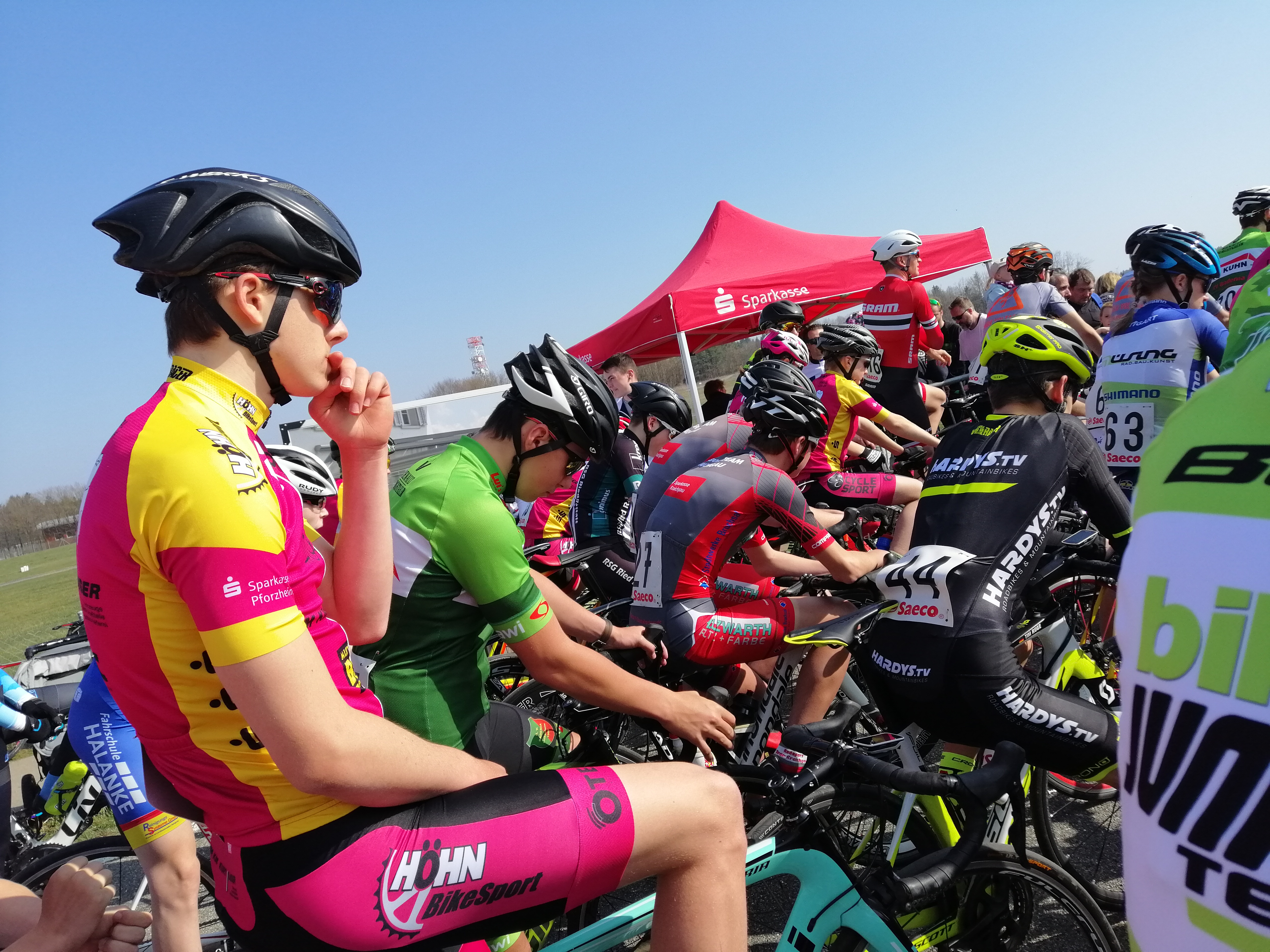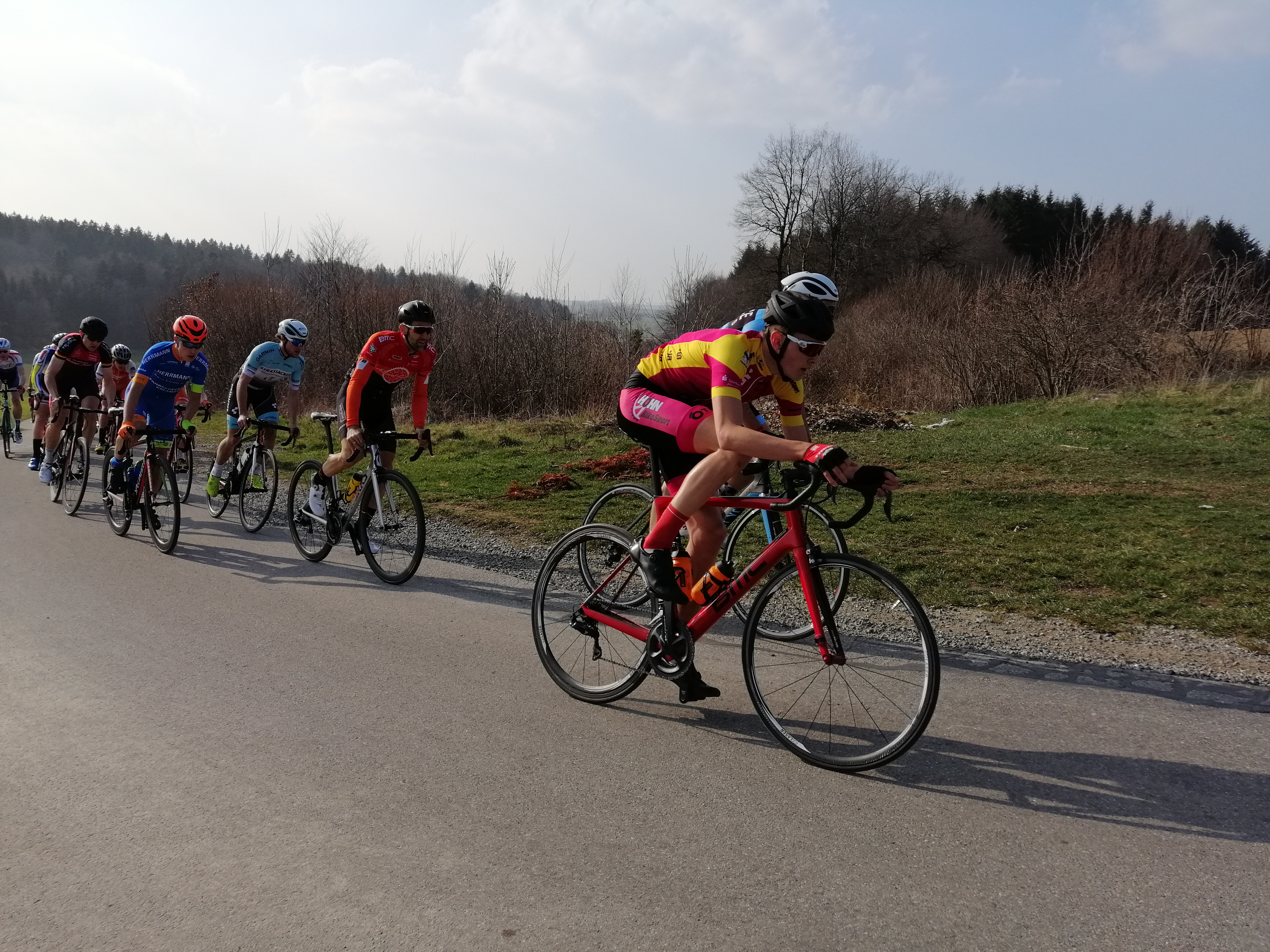 Ein weiterer Platz in den Top drei ergatterte Junioren-Fahrer Raphael Kübler. Über die, gemeinsam mit der Elite gefahrenen, “80 Runden + 2 Minuten” erreichte er den dritten Platz der Juniorenklasse. Das wellige Profil liegt dem 17jährigen, der sonst auch gerne in Frankreich Rennen fährt. Mit seiner Form zufrieden blickt er auf das nächste Wochenende, an dem in Einhausen das erste Bundesligarennen stattfinden wird. Nicht zufrieden war Juniorenfahrer Maximilian Boos. In der ersten Runde noch sportlich auf vorderster Position den “fiesen Anstieg” des Pfullendorfer Rundkurs hoch getreten, verließen ihn die Kräfte schon früh. “Ich weiß nicht, was mit mir los war. Irgendwie stimmte heute gar nichts”, seine Aussage, als er das Rennen frustriert vorzeitig aufgeben musste.