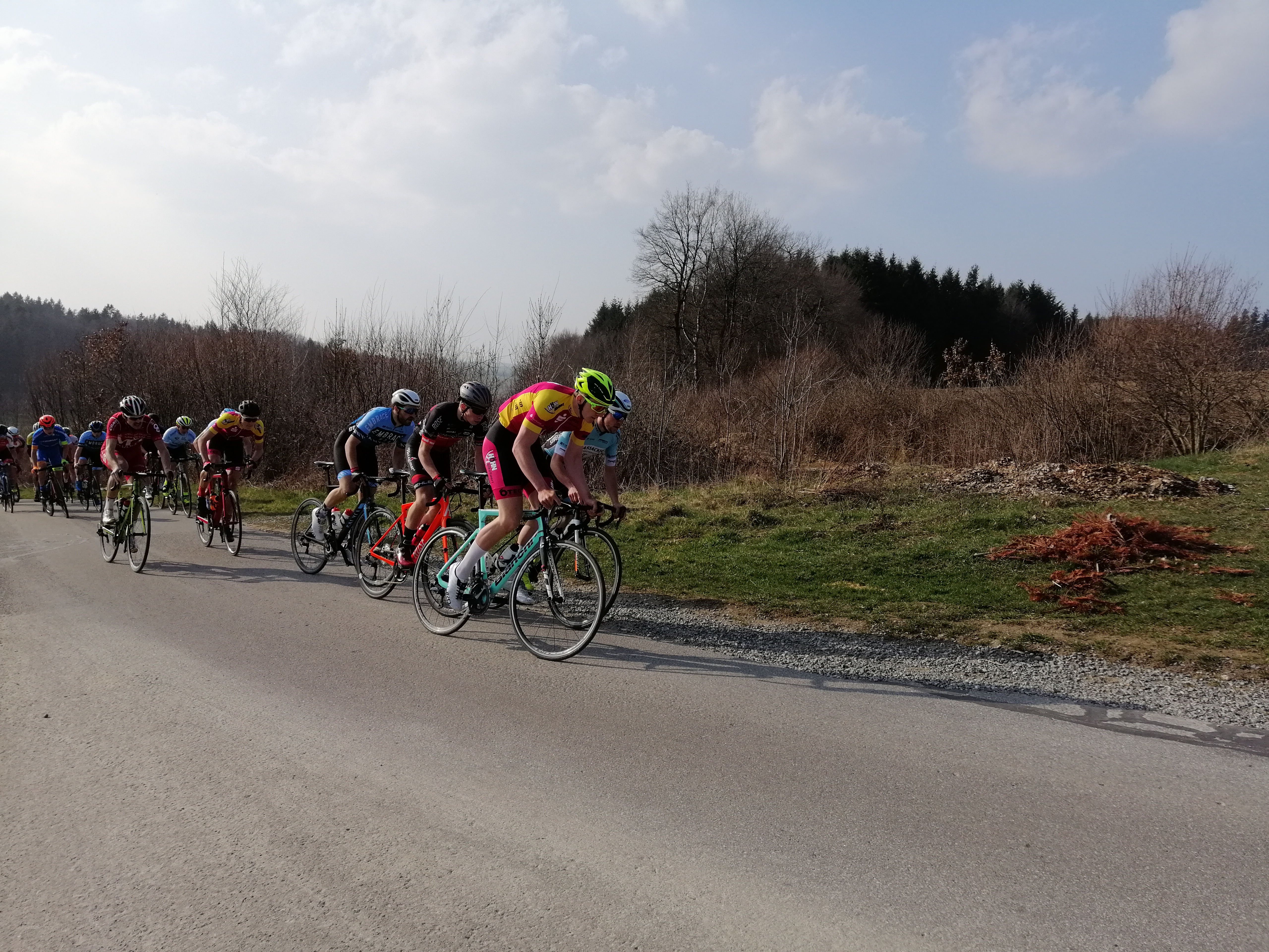 Der jüngere Boos-Bruder, Benjamin, beendete das Rennen über “50 Minuten und eine Runde” auf dem vierten Rang. Über die gesamte Renndistanz fuhr er in der vierköpfigen Führungsgruppe. Eine Attacke am Anstieg der letzten Runde wollte er nicht mehr mitgehen. “Ich spürte, dass heute nicht mein Tag war.” Im selben Rennen kämpften noch weitere “Schwalben” um die Platzierungen: Max Schüßler hielt sich in einer Verfolgergruppe und beendete das Rennen auf dem 19. Rang der fast 30 Starter. Der ebenfalls in die Jugendklasse frisch aufgestiegene Elias Ratz auf Rang 21. Die beiden Jugendfahrer, die ganz neu im Lizenzsport sind, Jonas Steppe und Maksym Baginskyi, auf den Rängen 25 und 28. Jennifer Kuppel, die im selben Rennen fuhr, erreichte den vierten Rang der Juniorinnen. “Das ist wirklich nicht mein Streckenprofil”, so die fünfzehnjährige, die ebenfalls wie Kübler und Boos am nächsten Wochenende in Einhausen am Start stehen wird.