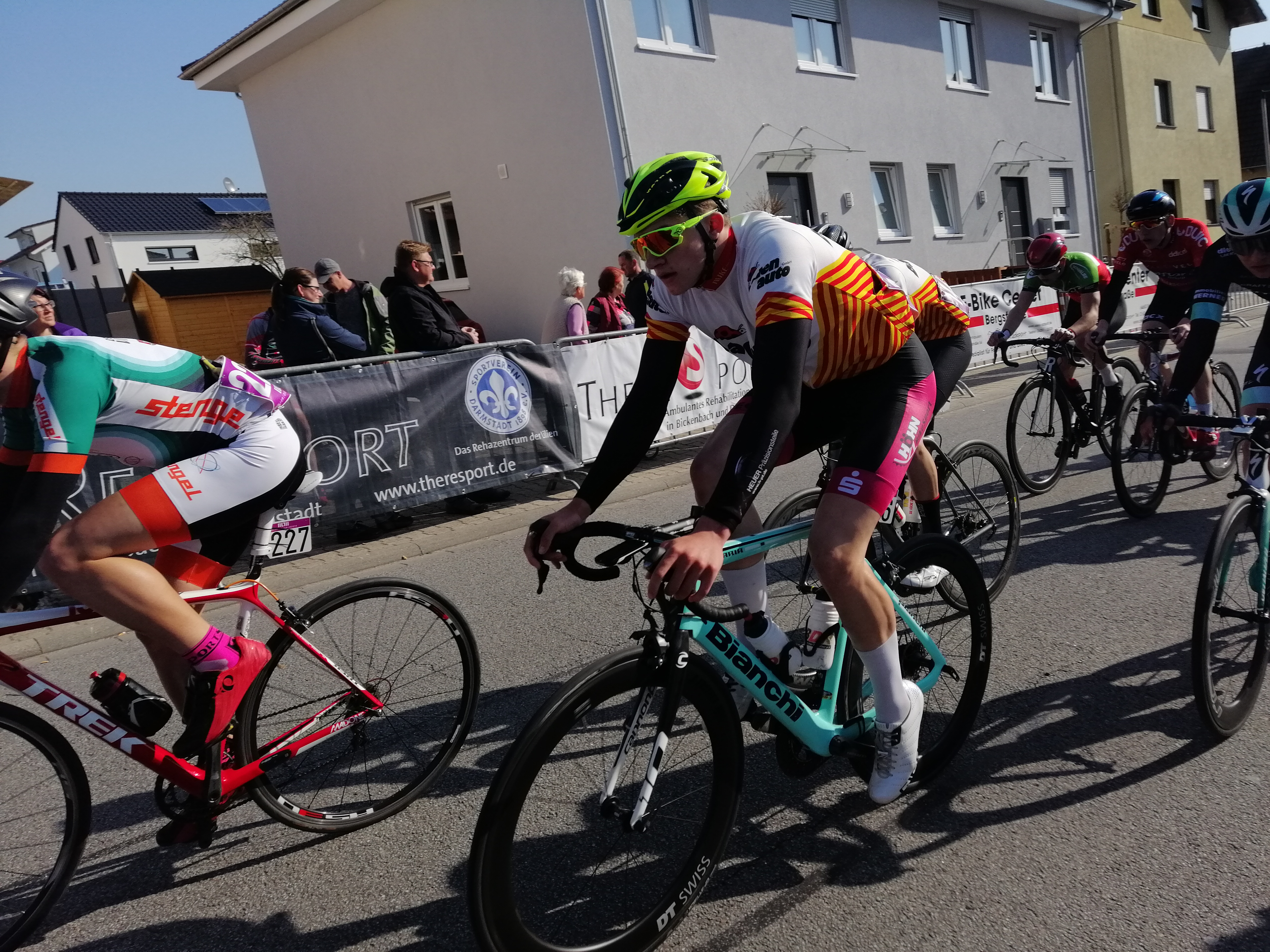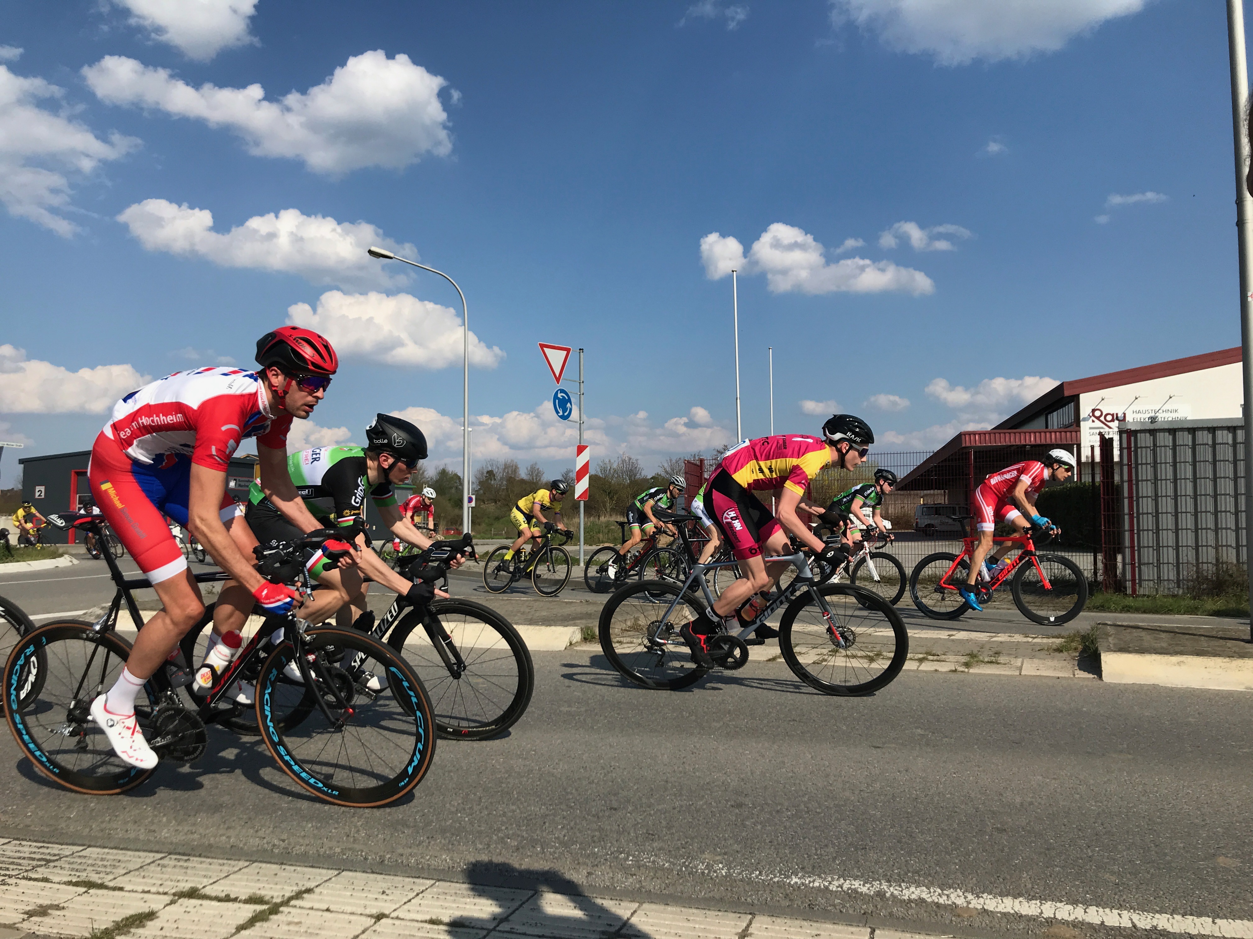 Pünktlich um 9 Uhr morgens ging es in 11 lange Runden – eine Renndistanz von 121km. Im Trikot des LV Baden standen Raphael Kübler und Maximilian Boos vom RSV Ellmendingen mit zehn weiteren Fahrern des Landesverbandes am Start. In langgezogenen Feldern zogen die 120 Fahrer ihre Runden. Bei einem durchschnittlichen Tempo von über 45km/h konnte sich erst spät eine sechsköpfige Gruppe lösen, die sich bis zum Ende mit knappem Vorsprung vor dem großen Feld durchsetzte. Aus dieser stammte der Sieger Linus Rosner (Auto Eder Team/ BAY). Obwohl sich die RSV Fahrer immer vorne und aktiv zeigten, war eine vordere Platzierung im Massensprint nicht möglich. “Auf der Zielgeraden blockierte ein Krampf meinen Tritt. Schade! Eigentlich hatte ich bis auf die Zielgerade super-Beine und auch ein tolles Hinterrad…”, berichtet Boos, der die gute Tagesform mit mehreren Sprints auf Sprintpunkte unter Beweis stellte und sich zwei derer sicherte. Kübler freut sich derweil auf die bergigeren Rennen, in denen er eher seine Chancen sieht. Auch, wenn die Plätze 41 (Boos) und 43 (Kübler) die besten des LV Badens an diesem Tag waren, zeigte man sich damit nicht zufrieden. Am nächsten Wochenende will man beim zweiten Bundesliga-Rennen in Düren wieder angreifen.