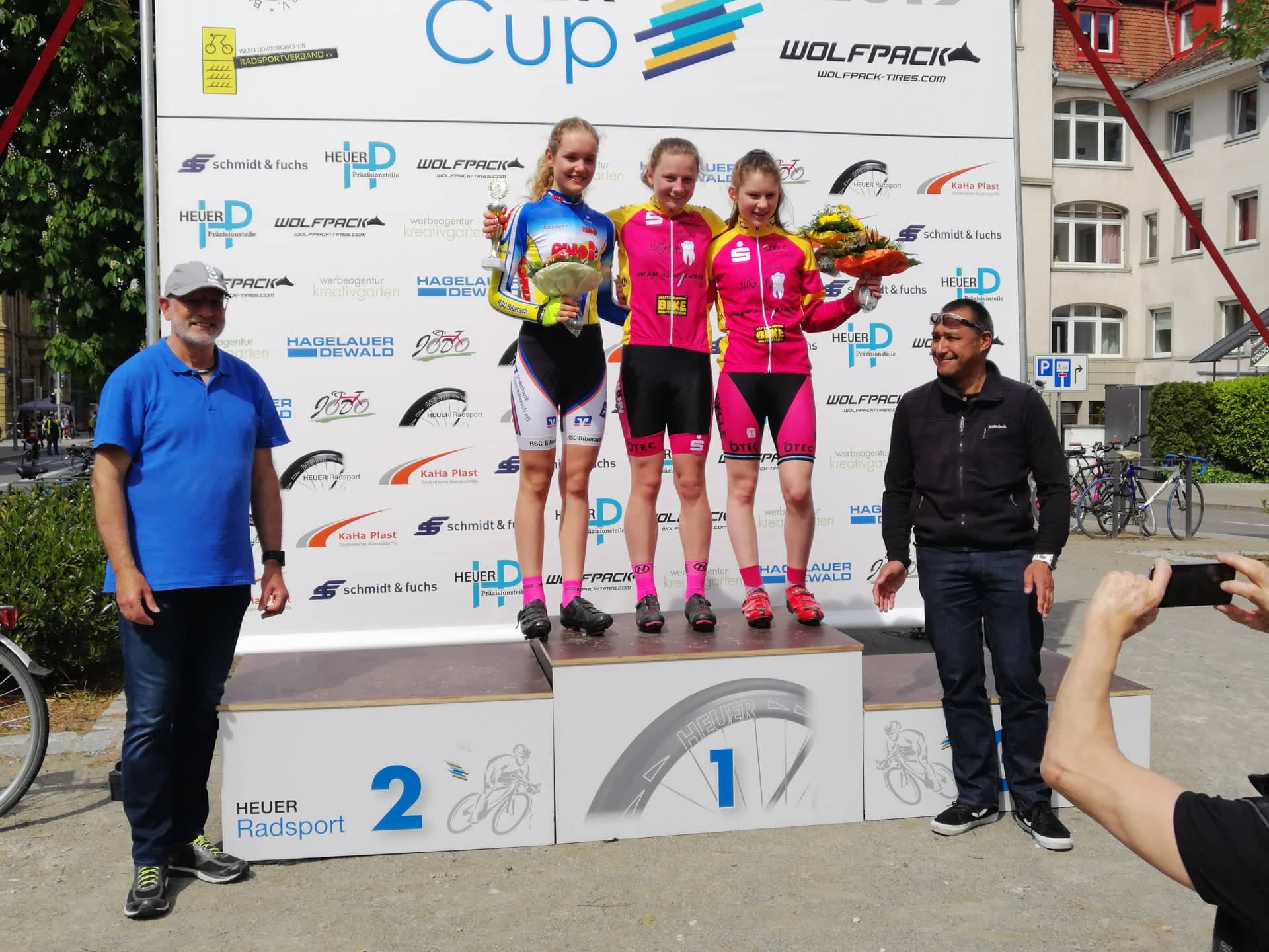 Bei den Schülerinnen ergatterte sich Leonie Boos zwischen den sprintstarken Jungs einen Wertungszähler und gewann damit das Rennen der Schülerinnen. Lukretia Naldi erreichte im Schlusssprint den Dritten Platz dieser Altersklasse. Sie übergab das Führungstrikot des RegioCups an die Vereinskollegin.