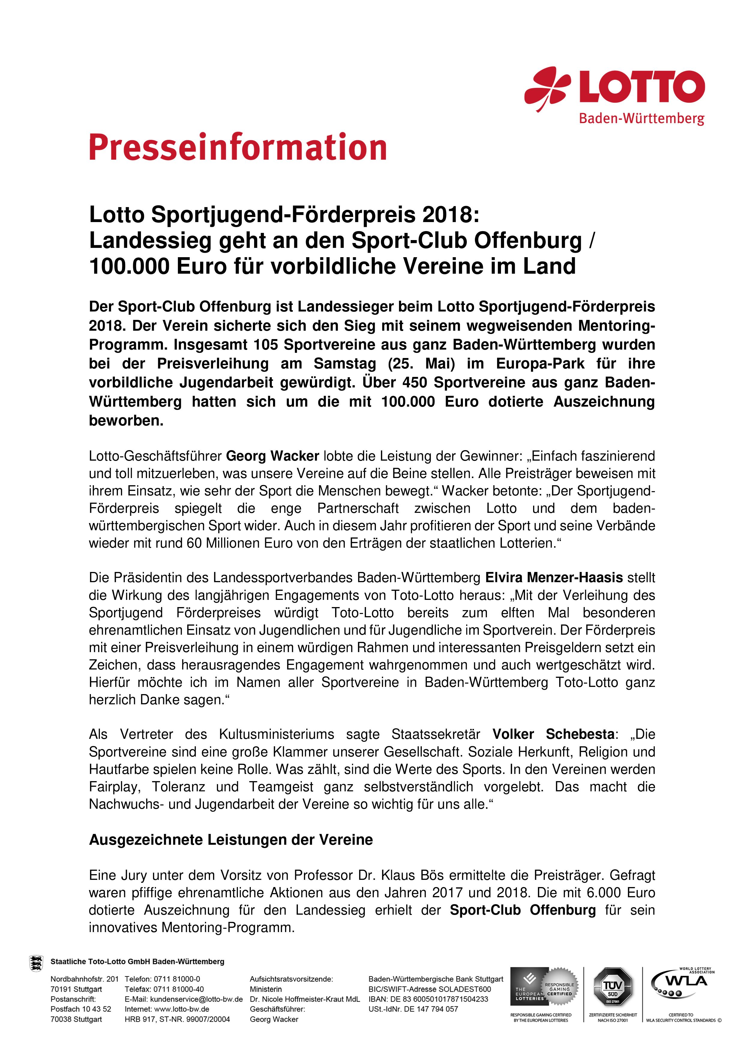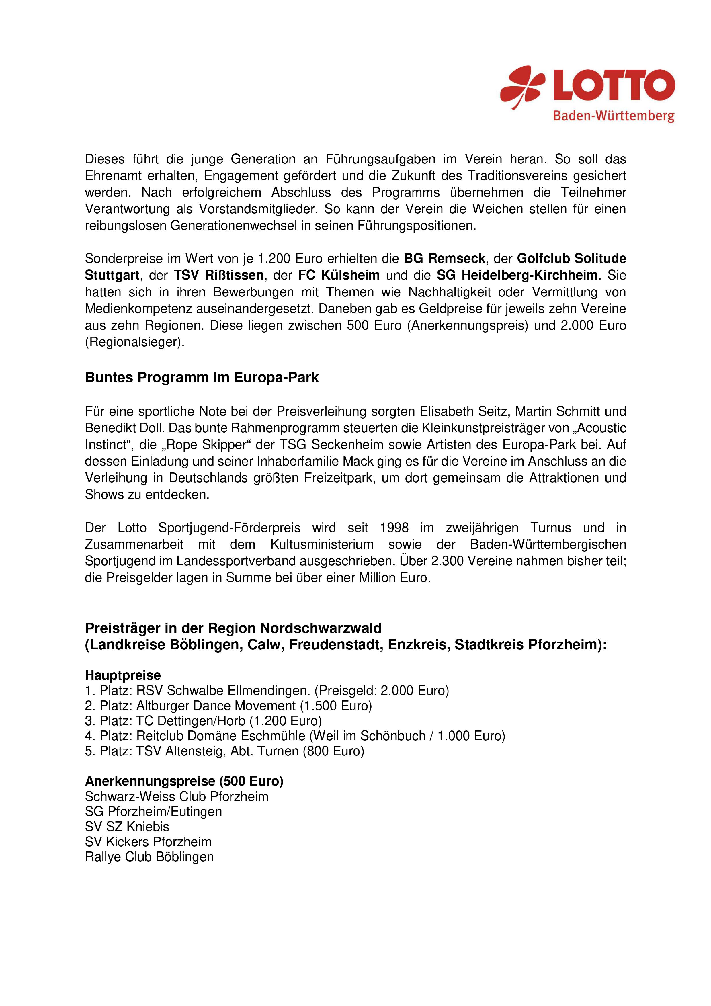Am 25.05.2019 fand die Preisverleihung des Sportjugend-Förderpreises des Lotto Awards im Europa-Park Dome in Rust statt. Fast 500 Vereine aus Baden-Württemberg hatten sich beworben.