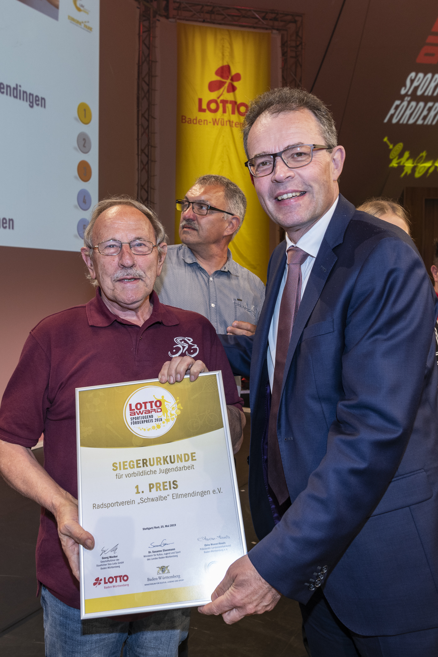 Die Radler in Ellmendingen dürfen Stolz auf das Erreichte sein und auf die dritte Ehrung für ihre Projekte in 2018 durch den Sportkreis-Förderpreis der Sparkasse Pforzheim Calw, den Badischen Sportbund und als Krönung die Verleihung des Sport Förderpreises von LOTTO Baden-Württemberg.