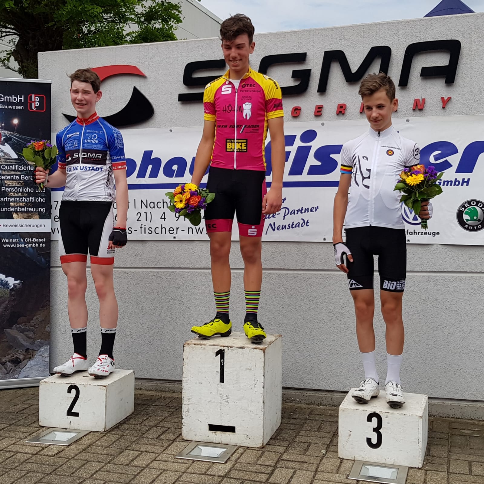 Raphael Kübler startete im Rennen der Senioren und ersprintete sich als bester Junior den Gesamtrang drei des Rennens. Jennifer Kuppel blieb ebenfalls vor ihrer Konkurrentin und zierte das Podest an höchster Stelle. Leider gab es in den Schülerklassen deutlich wenig Starter… trotzdem freute sich Leonie Boos (U15w) über ihren Erfolg. Sie ersprintete ausreichend Punkte für den Sieg der weiblichen Schülerklasse. Ebenso Benjamin Boos, der sich schon bald vom Feld der Jugendfahrer absetzte, dieses einmal überrundete, um dann später noch einmal als Solist vorne heraus zu fahren.