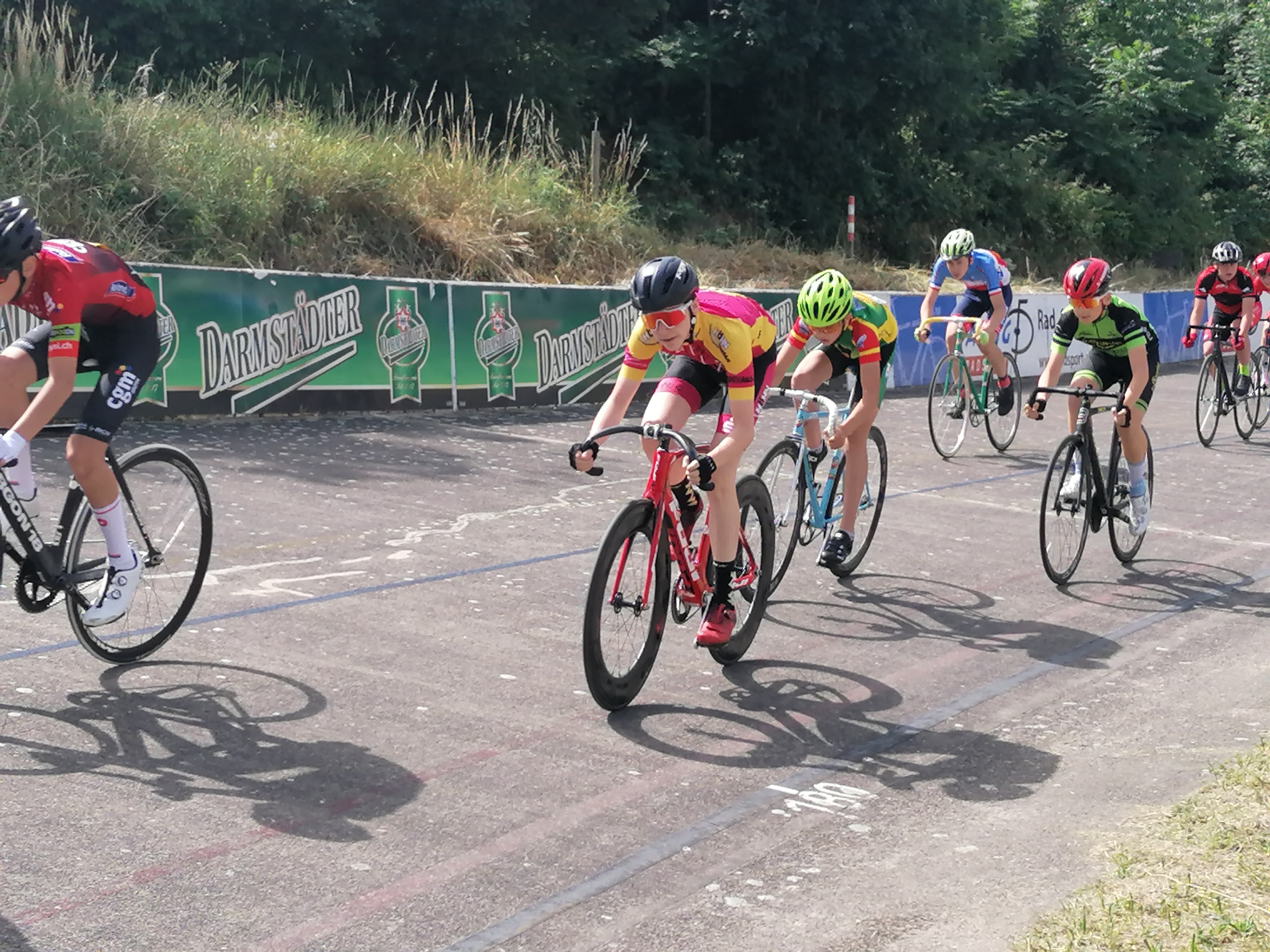 Lena Deschner bestritt das erste Rennen nach längerer Verletzungspause. In ihrer Altersklasse U13 kämpfte sie auch gegen starke Fahrerinnen aus dem Pfälzer Landesverband, die die vorderen Plätze unter sich ausmachten. Lena erreichte hinter der Cup-Führenden Denise Schulz aus Oberhausen in der Gesamtwertung des Omniums Rang 4.